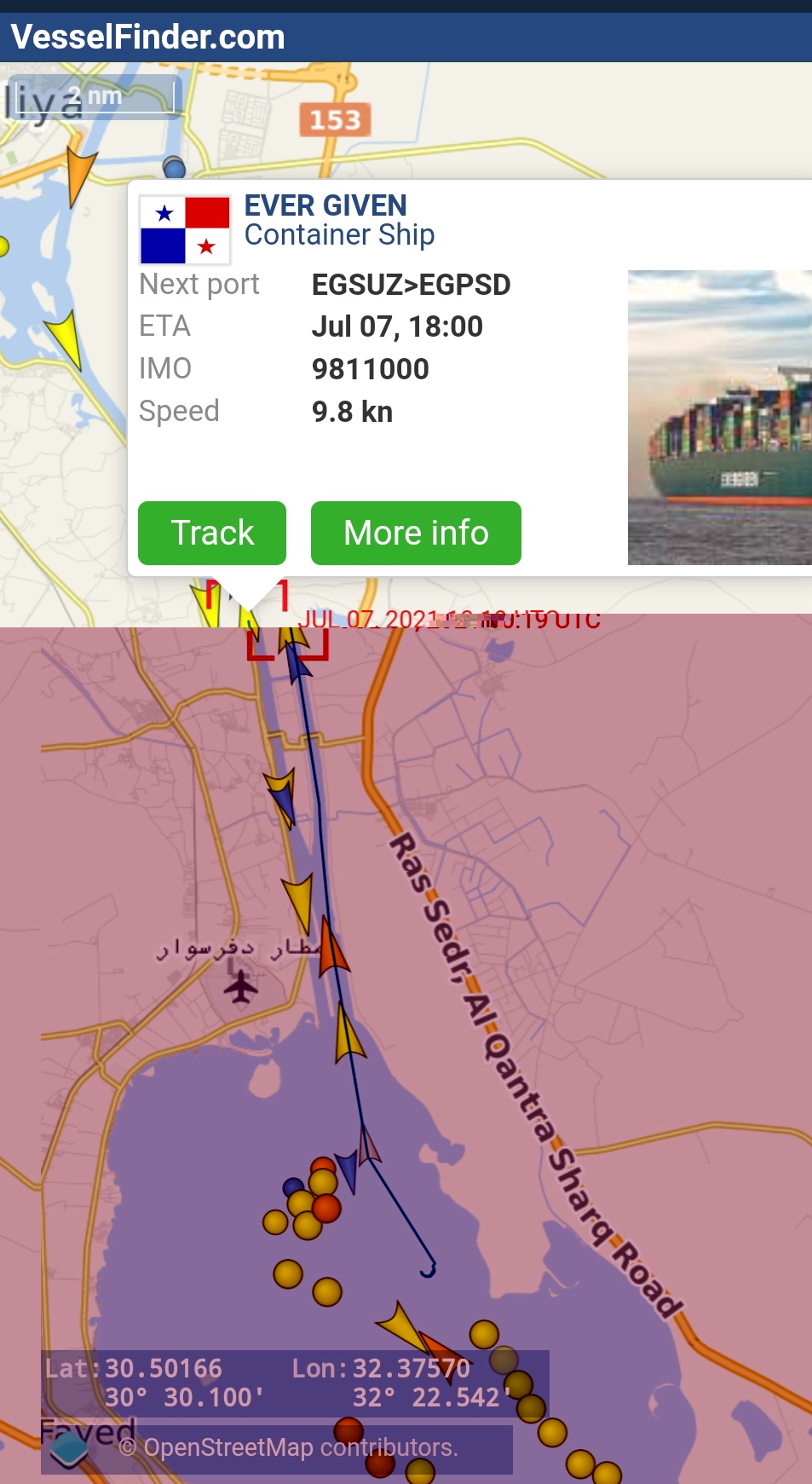 Pre zaujímavosť a sledovanie procesu. Ever Given sa pred jeden a pol hodinou, teda o 09:00 UTC po tri a pol mesiacoch pohla... ![60e5846d9fae7](serve/attachment&path=60e5846d9fae7)