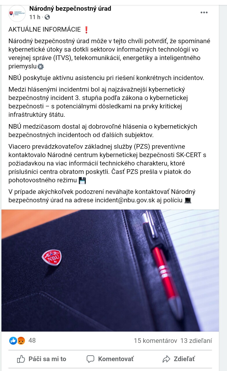 Národný bezpečnostný úrad (NBÚ) zaznamenal sériu významných ransomvérových útokov na slovenské ciele. Upozorňuje všetky firmy a inštitúcie v krajine, aby okamžite zabezpečili a zálohovali svoje systémy proti potenciálnemu útoku.