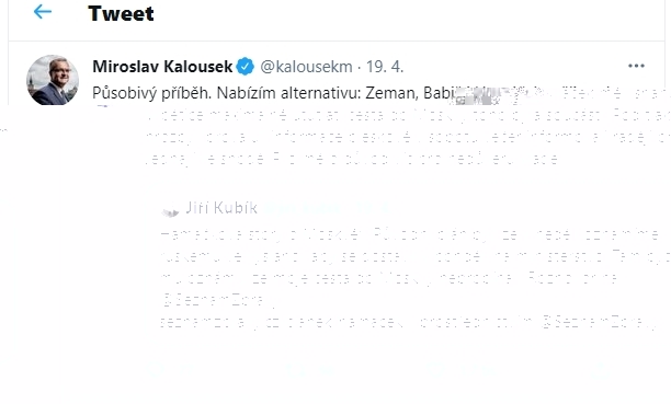 Když klikneš na ten zobrazený tweet ( na text ), a ne na adresu odkazu, tak se to otevře s Kalouskem, Petříčkem,...