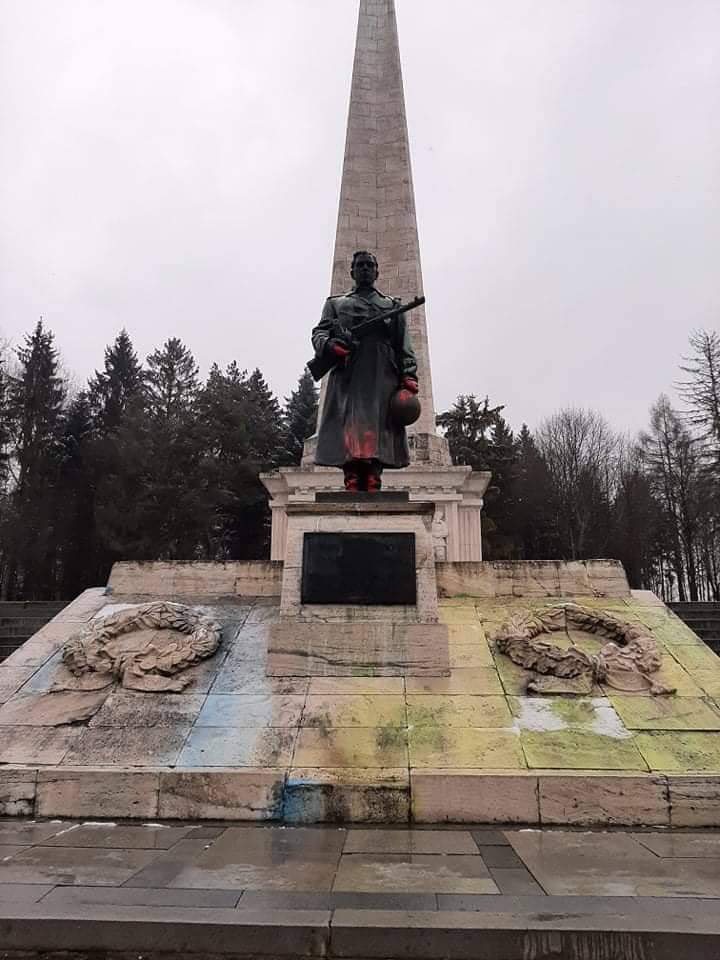 🔉 V noci z 8. na 9. marca zlomyseľníci znesvätili pamätník vojaka osloboditeľa na pamätnom cintoríne vojakov Sovietskej armády vo Svidníku.