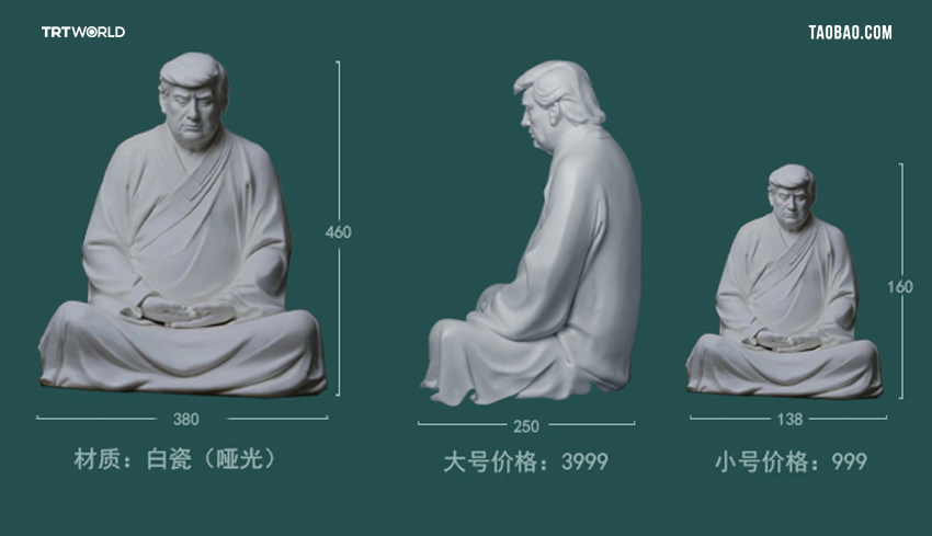 Týmto heslom sa predávajú keramické sošky Donalda Trumpa štylizovaného ako Budha (skôr vyzerá ako rytier Jedi), tieto sošky sú obzvlášť populárne na čínskej sieti Taobao, kde sa predávajú vyššie uvedeným sloganom. Cena v závislosti od veľkosti je 999 až 3999 Yuanov: